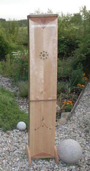 Das heute wieder entdeckte SANDAWA – MONOCHORD und eigentlich ist es ja ein Polychord (Vielsaiter = Resonanzkörper mit mehreren gleichen Saiten) ist ein beidseitig bespanntes Musikinstrument und hat je Klangseite 20 bis 40 eng beieinander liegende, auf jeweils einen Grundton eingestimmte Saiten, welche mit beiden Händen mühelos gestrichen werden können und mit zauberhafter Leichtigkeit diesen faszinierenden obertonreichen und reinen sphärischen Klang offenbaren, welcher uns vielfältigste Möglichkeiten zum freien, experimentierfreudigen Entdecken der ureigensten Musikalität bietet.