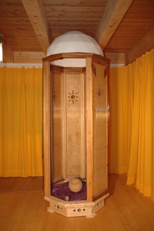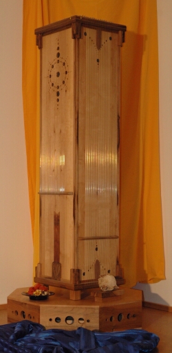 Der obere Abschluss besteht aus einer geodätischen Kuppel, durch die der erzeugte Schall im Innenraum des Instrumentes sehr deutlich verstärkt wird und damit auch die Wirkung der Töne und Klänge und vor allem der Obertöne, die einen Klangraum erzeugen, der die Gedanken vergessen lässt, die Zeit wird langsamer und das Bewusstsein dehnt sich aus.