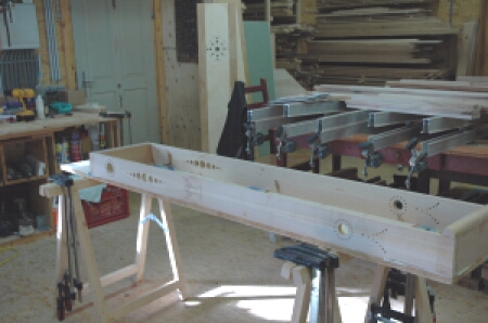 Die Seitenteile, Wirbel- und Stegstiftblöcke und Stegleisten bestehen aus Hartholz, wie z.B. Birne, Ahorn, Birke, Kirsche, Nussbaum oder ganz besonderen Edelhölzern, wie Olive, Ebenholz, oder Bubinga.